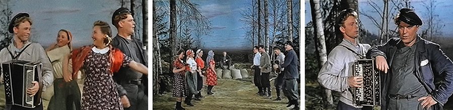 У режиссеров была возможность развернуть масштабные съемки на натуре и даже отстроить деревню с нуля, но не это была их цель. Их цель была показать образ как образ, дать ошарашенным войной людям модель новой жизни. Именно в отсутствии каких-либо зазоров между песнями артистов на сцене и героя.