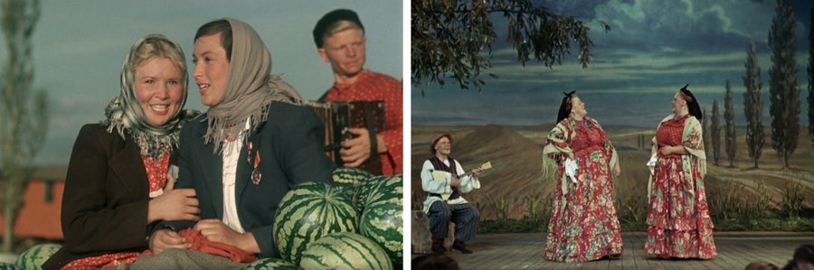 «Кубанские казаки», реж. Иван Пырьев, 1950 // «Свадьба с приданым», реж. Борис Равенских и Татьяна Лукашевич, 1953