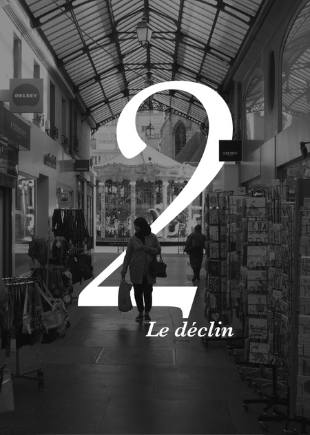 Упадок парижских пассажей был результатом сразу нескольких факторов — экономических, градостроительных, технологических и культурных. Во-первых, изменилась сама структура торговли. В середине XIX века в Париже начали активно развиваться grands magasins — крупные универмаги вроде Le Bon Marché или Printemps, предлагавшие покупателю огромные залы, широкий ассортимент и новые формы обслуживания. Массовая реклама, единые цены и возможность совершить все покупки под одной крышей стали символом прогресса. На фоне этой «новой коммерческой культуры» камерные лавки в пассажах выглядели устаревшими. Их атмосфера уюта и индивидуальности больше не соответствовала духу времени, ориентированному на скорость, масштаб и массовое потребление.