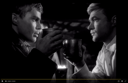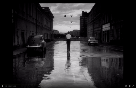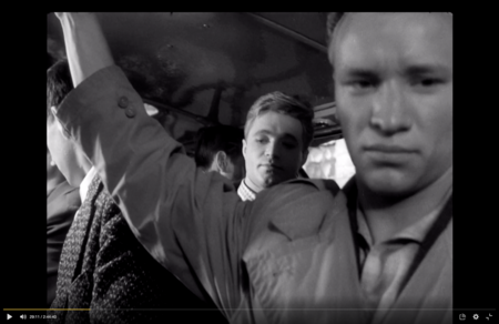 Я интерпретирую эту сцену, как визуальное введение в тему внутреннего отделения. В общественном транспорте, символе послевоенной городской общности, герой впервые ощущает не единство, а дистанцию. Он и Аня принадлежат одному пространству, но уже разделены ритмом времени и плотностью города. Камера буквально высвобождает одиночество из массы, фиксируя момент, когда взгляд становится личным опытом.