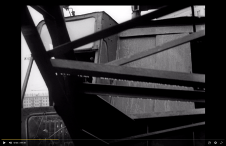 Хуциев выстраивает кадр документально, но при этом метафорически точно: экскаватор с тяжёлым шаром можно интерпретировать как символ механического, неостановимого процесса обновления, который сметает старое. Камера то отдаляется, показывая конструкцию целиком, то приближается, когда шар врезается в стену. Возникает ощущение ударов по телу города. Композиционно кадр насыщен перекрещивающимися металлическими линиями, которые дробят пространство и затрудняют взгляд, словно герой сам не может «увидеть целое» в происходящем.