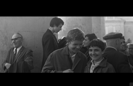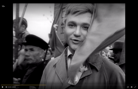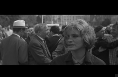 Эта сцена ярко передает образ одиночества внутри массы — один из центральных мотивов шестидесятых. Мы видим человека среди людей, но вне общего ритма. Сергей движется против потока, ищет взглядом одно лицо. Благодаря композиции и монтажу его чувство изоляции ощутимо. Толпа становится фоном не единения, а рассеивания. Именно так Хуциев показывает новое состояние героя эпохи «оттепели» — человека, который впервые чувствует себя отдельно от общего праздника, впервые замечает дистанцию между внутренним и внешним.