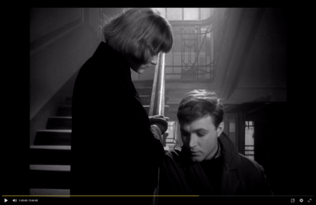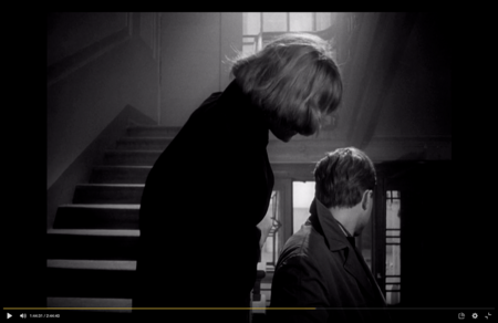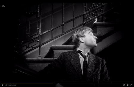 Сергей провожает Аню, но она не пускает его домой. Он останавливается на лестнице и хочет подняться, но Аня просит его уйти. Перила становится визуальной границей между героями.