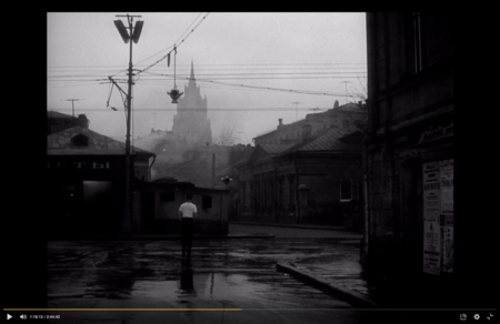 Отправной точкой становится период «оттепели». В советском кино в это время впервые появляется взгляд на повседневность. После героического и декларативного кино предыдущих десятилетий возникает потребность говорить о частной жизни и о внутреннем. Этот сдвиг меняет саму структуру и наполнение кадров: вместо масштабных пространств и коллективных действий появляются тихие городские сцены, дворы, комнаты, остановки, окна, где герой существует один на один с реальностью.