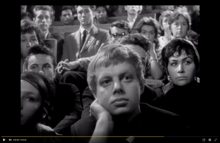 В аудитории люди могут переживать совместный опыт, но камера показывает её не как единое тело, а как пространство из множества отдельных фрагментов, мозаику.
