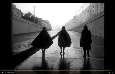 Лена снова идёт по улице и оборачивается на камеру. Пространство города снова оживает: мимо проносятся люди. Лица и фигуры на заднем плане растворяются, резкость остаётся только на Лене, улавливая взаимодействие с камерой и зрителем.