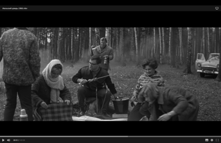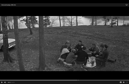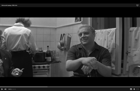 На мой взгляд, в этой сцене формируется «оттепельное ощущение одиночества». Пространство не закрывает друзей друг от друга и от мира. Визуально оно выглядит просторным и свежим, позволяющим героям говорить свободно и слышать свой собственный голос.