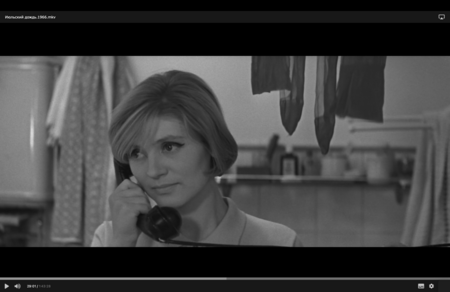 Монтажный переход (match cut) от моря к окну. Вода и стекло становятся визуально однородными поверхностями, обе — прозрачные, но непроходимые. В первой части они разделены стихией, во второй — рамой. В обоих случаях герои остаются рядом, но каждый по свою сторону неуловимого барьера. Герои снова оказываются в городском сеттинге, и именно здесь Лена наконец произносит то, что весь фильм чувствуется между строк: несмотря на все хорошие качества Володи, она не пойдёт за него замуж. Это признание внезапно для Володи, но для Лены это проявление ясности. Оно звучит без драмы, почти буднично, но именно потому так весомо. В нём нет отрицания — есть осознание отсутствия необходимого чувства и невозможности быть вместе.