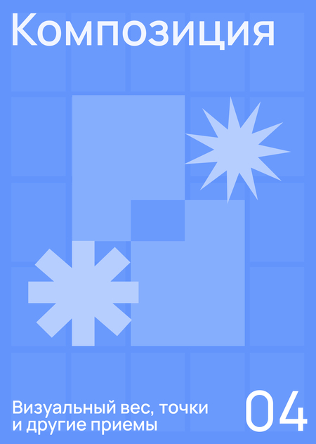 Цель этой темы — научить участников курса основам композиционного мышления в дизайне: понять, как с помощью визуальных приёмов (визуальный вес, цветовые акценты, иерархия, модульные сетки и т. д.) управлять вниманием аудитории, выстраивать визуальный порядок и находить композиционный баланс.