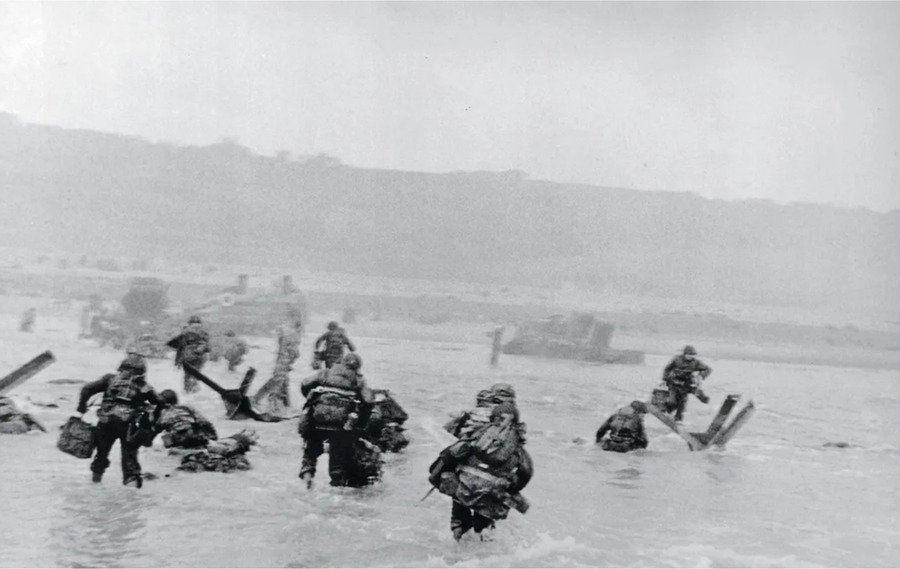 [ф. 52, 53, 54, 55] Роберт Капа. Нападение американских войск на пляж Омаха во время высадки в день Д. Нормандия, Франция. 6 июня 1944