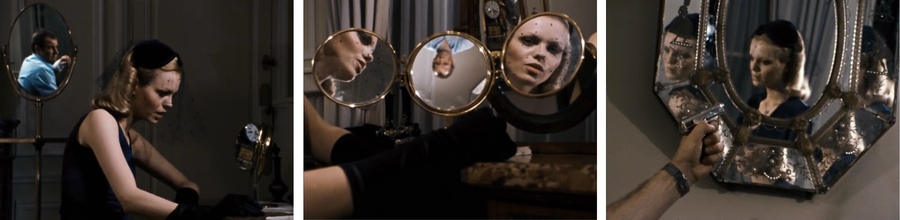 Часто это проявляется через использование большого количества отражающих поверхностей. Окружение может быть заполнено стеклянными витринами, зеркалами или материалами с отражающей текстурой, подчеркивающими иллюзорность пространства. В кинематографе часто используют съемку через окно, стекло или зеркало, намекая на двойственность и искусственность мира.