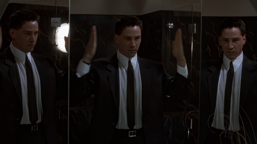 Виртуальный мир — отражение реального, а искусственный интеллект — отражение человека. Таким образом, визуальные медиа наполняются приемами, метафорично подчеркивающими эту двойственность, которая символизирует иллюзорность и нереальность окружающего пространства.
