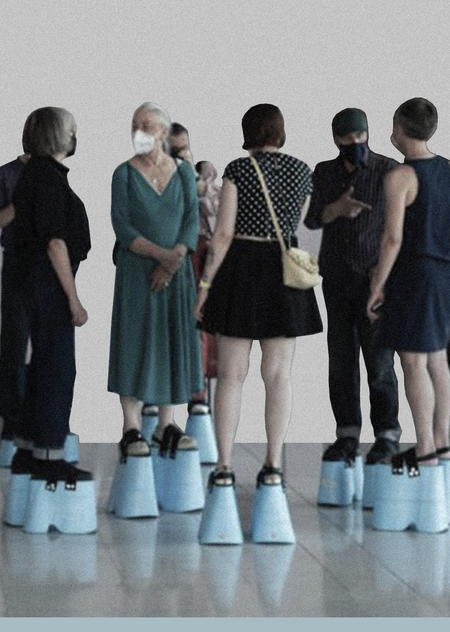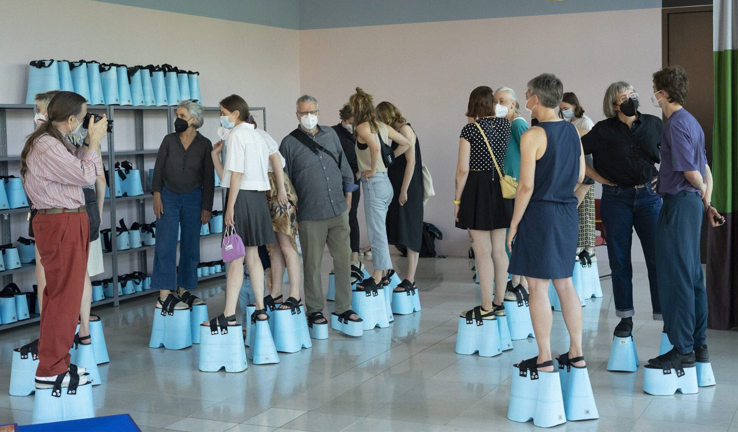 Проект Ханса Хеммерта «Вечеринка одинакового роста» (1997-2021) — это остроумная и многослойная метафора, иллюстрирующая сложность понятия инклюзивности. Внешне простая идея — выровнять всех гостей по росту с помощью специальной обуви — раскрывает абсурдность попытки достичь равенства лишь путем искусственного устранения физических различий. На самом деле, «одинаковый рост» в проекте Хеммерта лишь подчеркивает другие, более глубокие уровни неравенства, которые невозможно «выровнять» подобным способом. Это может быть социальный статус, экономическое положение, образование, культурный бэкграунд и многое другое. Перформанс заставляет зрителя задуматься: достаточно ли просто создать видимость равенства, или же необходимы более глубокие и системные изменения для построения истинно инклюзивного общества? Хеммерт создаёт репетиционное пространство, в котором ирония и визуальная метафора раскрывает важные вопросы о природе социальной справедливости и неравенстве.
