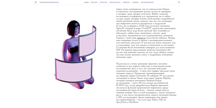 Иллюстрация — это такая же часть структуры статьи, как и сам текст. Ритм чтения создают не только заголовки, сноски и абзацы, но и разноплановые иллюстрации, которые так же поддерживают ритм повествования и помогают читателю ориентироваться в частях текста.