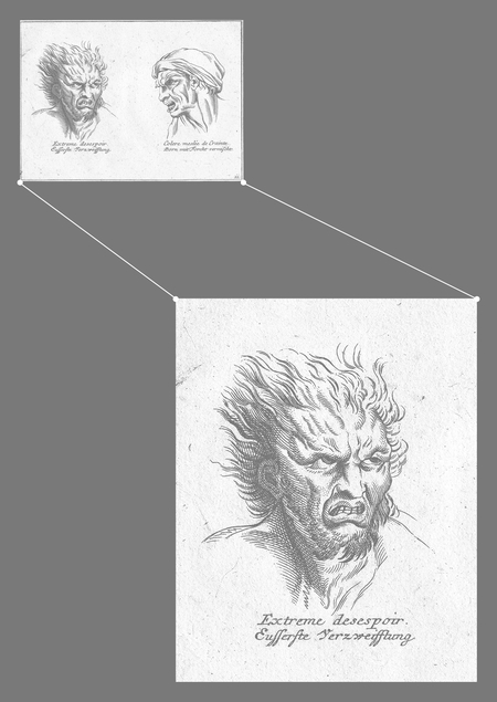 Визуальная логика Лафатера строилась на градациях. На одной из самых знаменитых иллюстраций профиль лягушки (угол лба около 25 градусов) постепенно трансформируется в профиль Аполлона (угол лба около 100 градусов) через двадцать четыре промежуточных стадии. Чем прямее лоб, тем выше интеллект и моральность. Чем ближе угол лба к горизонтали, тем ближе существо к животному состоянию.