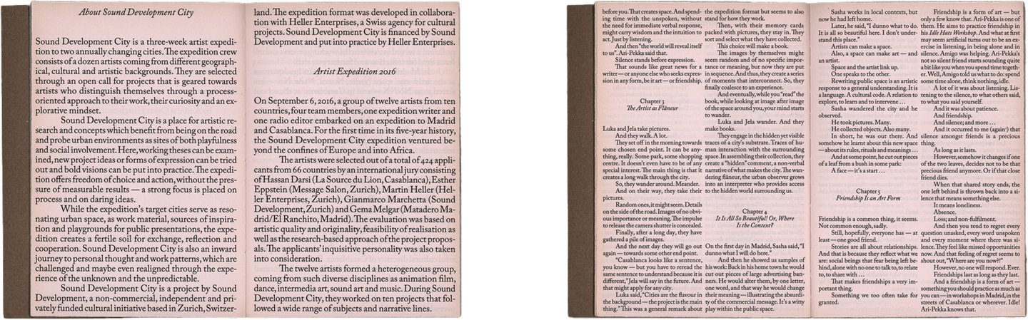 «Sound Development City: Документация», 2016 Формат: 155 × 225 мм Дизайн: Скотт Вандер Зи, Керстин Лэндис, Йонас Фёгели Издательство: Sound Development City / Heller Enterprises