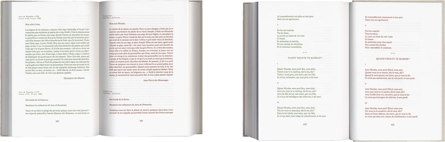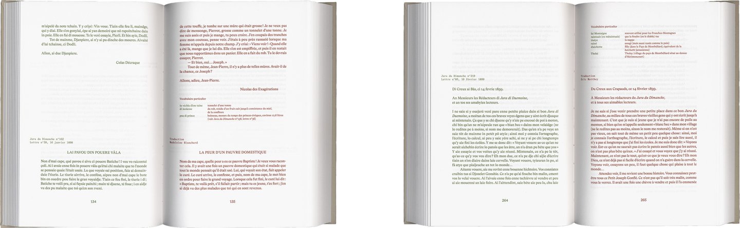 «Воскресенье в Юре. Диалектные письма, 1896–1914», 2020 Формат: 150 × 225 мм Дизайн: Димитрий Жаннотта Издательство: SJE, Société jurassienne d’émulation