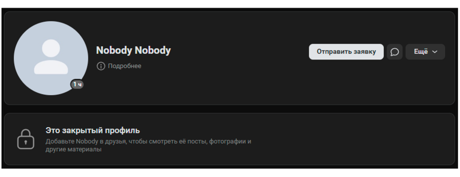 Полностью анонимная страница пользователя Instagram*. * — Соцсеть принадлежит компании Meta, признанной экстремистской в РФ.