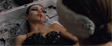 Нина Сайерс во время очередной галлюцинации видит, как убивает осколком зеркала свою конкурентку балерину Лили, которая в то же время выступает в сюжете как темный, более свободный и развязный двойник Нины.