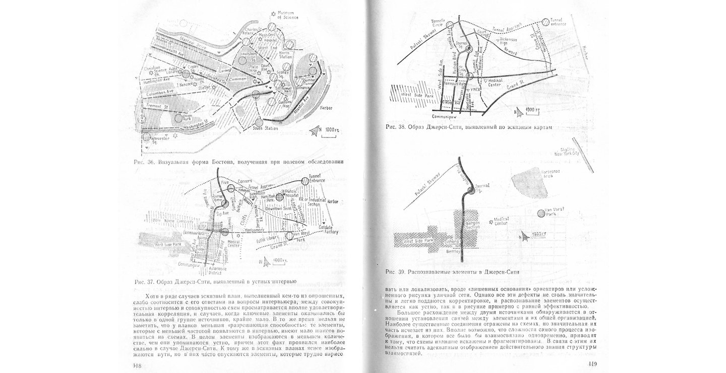 [30] Ментальные карты города с. 118, 119 из книги «Образ города» Кевин Линч, 1982 г. // [31] Ментальные карты города с. 116, 117 из книги «Образ города» Кевин Линч, 1982 г.