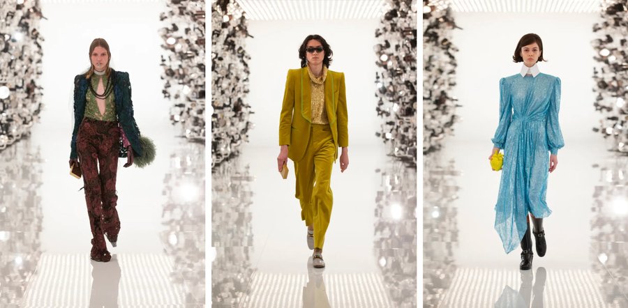 Схожим образом Gucci FW2021 «Aria» возвращает эпоху Тома Форда: бархат, блеск, декольте, 1990-е как визуальный вирус. Это не оммаж, а перезапуск собственной легенды, манифест, в котором цитата становится новой фазой бренда.