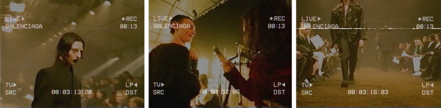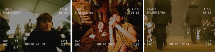 Та же логика работает в проекте Balenciaga «Lost Tape» (2022), который имитирует найденную VHS-запись 1990-х. Камера фиксирует шум, помехи, зерно, логотипы и временные метки — визуальные коды, создающие ощущение присутствия в прошлом. Здесь мы имеем дело не с архивом, а с псевдо-документом, который существует лишь для того, чтобы вызывать чувство подлинности. Марк Фишер [23] определял подобные культурные явления как «hauntological» — наполненные призраками неосуществленных будущих. В эстетике Balenciaga эта идея приобретает визуальную форму: мода становится медиумом «призраков», воспроизводя их в высоком разрешении.