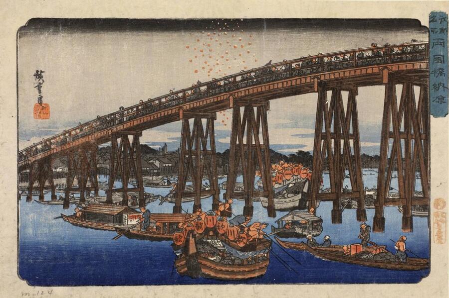 Утагава Хиросигэ, «Фейерверк на мосту Рёгоку», 1858 [27]