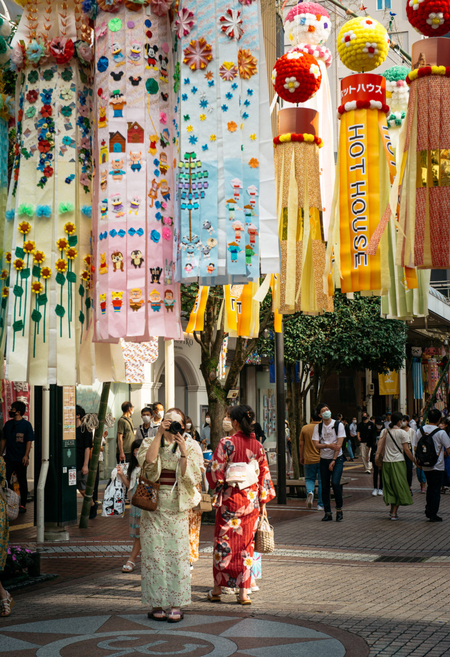 Джессика Кортеман, «Фестиваль Танабата в Сёнан Хирацука», 2012 [37]; Джерфареза Давиано, «Фестиваль Танабата в Сэндае. Вид в аркаде», 2022 [38]