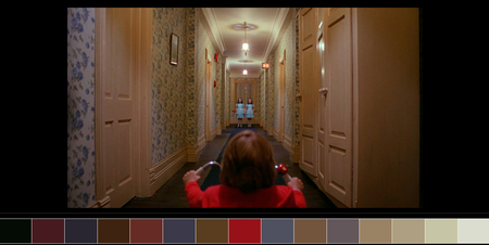 Таким образом, в «Сиянии» трекинг-шот — не просто технический приём, а ключевой элемент нарратива, который формирует напряжение, пространственное восприятие и психологическое состояние зрителя. Но важно понимать, что киноприем не существует в вакууме. На восприятие отрывков влиет совокупность множества факторов. Например, цветовая палитра.