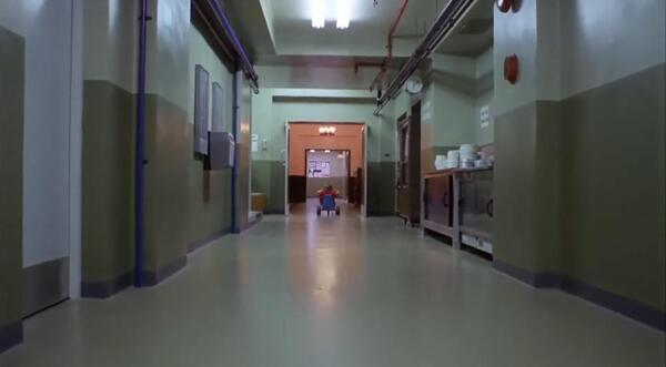Изменив темпоритмику сцены, нарушив идеальную симметрию, сделав корридор более оживленным, изменив цветовую палитру и эмоции актеров, можно кардинально повлиять на восприятие сцены. Визуализация, созданная с помощью ИИ, многократно уступает в качестве оригиналу, но наглядно демонстрирует, что важнее для зрителя — совокупность факторов, результат множества режиссерских и операторских решений. Но рассмотрим другой, во многом уникальный шот из «Сияния»: