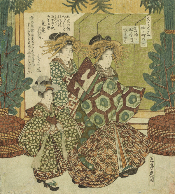 Сузуки Харунобу, «Пара устанавливает кадомацу (саженцы сосны) к Новому году в воротах своего дома», 1765-1770 [76]