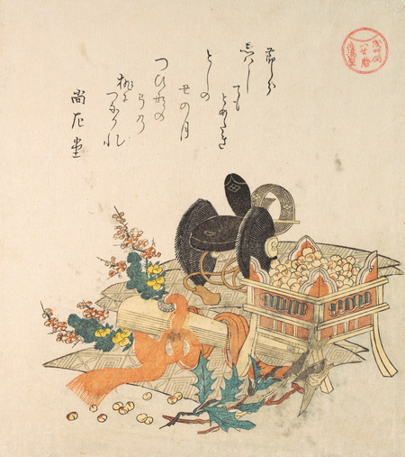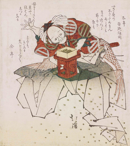 Тотойя Хоккей, «Асахина бросает бобы для Сэцубуна», б. д. период Эдо [85], Кубо Шунман, «Бобы для метания во время церемонии изгнания нечистой силы Сэцубун», ок. 1810 [86]