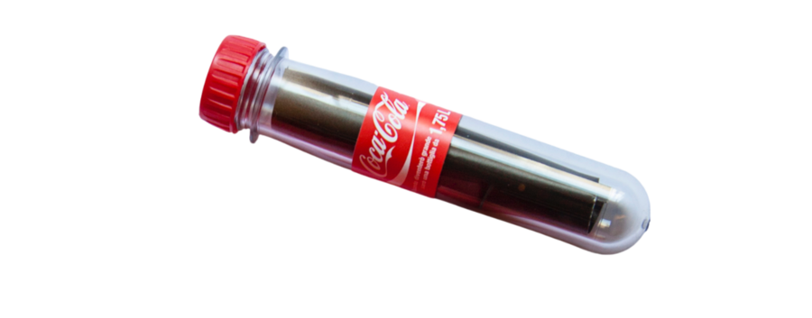 Упаковка, реализованая студией H‑57 Creative Station для Coca‑Cola, отражает стремление к нестандартному дизайнерскому решению, выходящему за традиционные рамки массовой упаковки. Здесь были использованы большие бутылки с браком, недоступные к продаже. Таким образом, получились микро-бутылочки, способные привлечь внимание потребителя к экологической повестке.