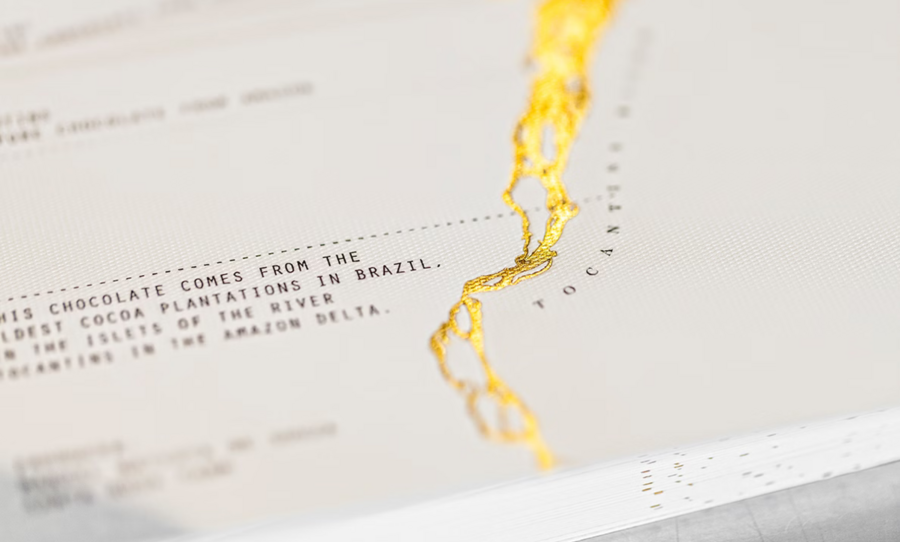 В концепции упаковки для линии «Tocantins» от Cacao Barry студия Zoo Studio применяет материалы и формы, которые подчёркивают происхождение и уникальность продукта. Коробка выполнена из бумажной массы и дополнена тиснённой лентой-обёрткой, вызывающей ассоциации с ручным мастерством и ремесленной традицией.