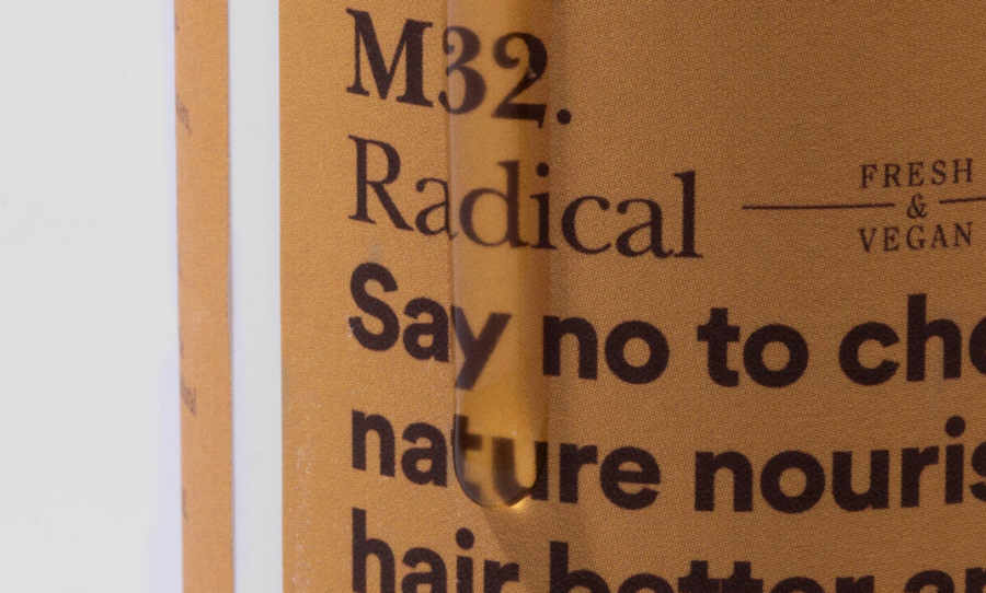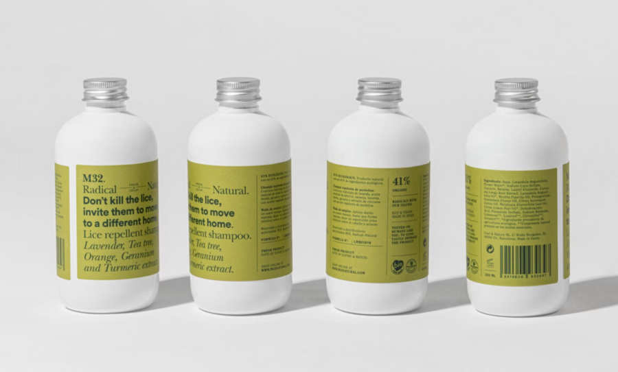 Упаковка M32 Radical — Natural показывает, каким образом визуальные элементы могут выполнять образовательную функцию и упрощать восприятие экологической информации. Применение цветовой маркировки, минималистичной типографии и фактуры этикетки помогает быстро понять состав и натуральные свойства товара. Такой метод отражает принципы edutainment: покупатель получает наглядные подсказки о характеристиках продукта без излишнего текста.