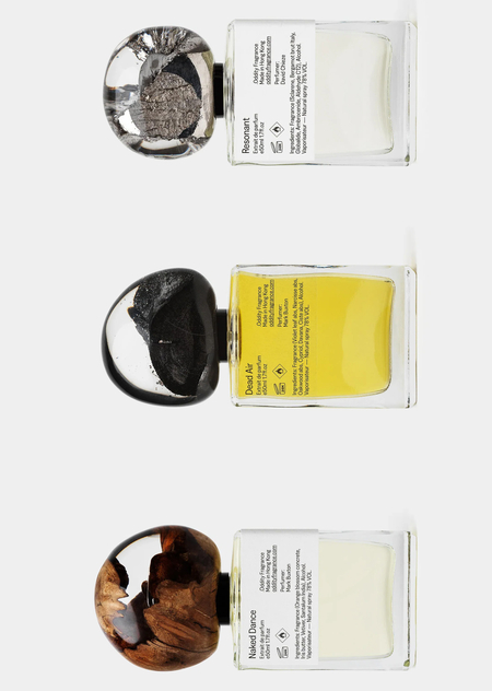 Парфюмерные бренды часто отличаются своей нишевостью и особенными подходами в упаковках. И вот проект упаковки для независимого бренда показывает переход от декоративного оформления к подлинности и осознанному подходу. Упаковка выполнена без применения пластика, изготовлена из переработанных и перерабатываемых материалов. Крышки флаконов сделаны вручную из остатков древесины, угля и минеральных компонентов, залитых эпоксидной смолой. Каждая крышка уникальна, что подчёркивает идею индивидуальности и ручной работы.