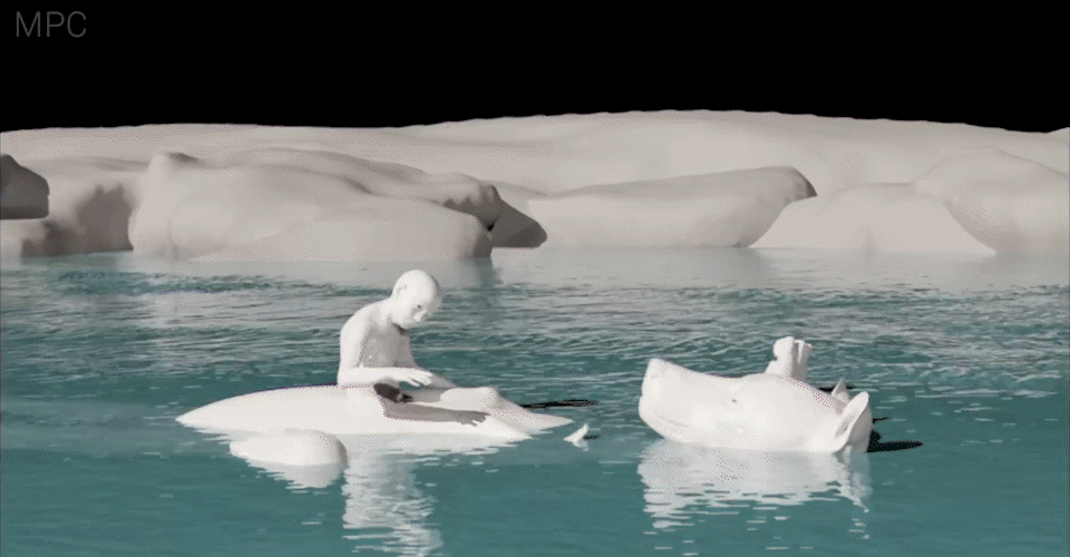 Волосы, находящиеся одновременно в подводных условиях и на поверхности — сложный с технической точки зрения процесс. Чаще всего подобные сцены выбирают реализовывать без использования CG-волос, останавливаясь на мокрой прическе актера.