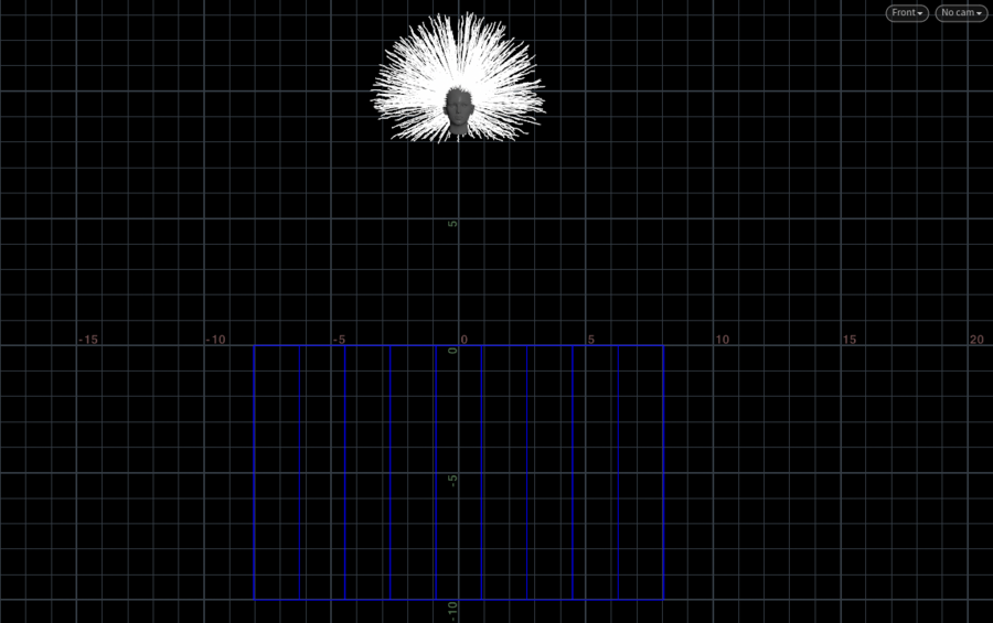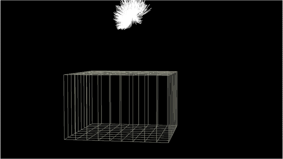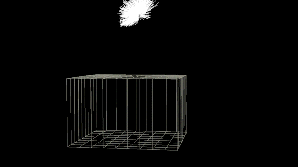 до того, пока волосы не окажутся в соприкосновении с поверхностью воды, они будут подвержены одним правилам, после — другим. Поэтому следует разделить путь на два разных Vellum-солвера. Первый работает по стандартным законам гравитации с силой тяжести равной -9.8 по оси Y, второй — с силой 0.8 и дополнительными условиями.