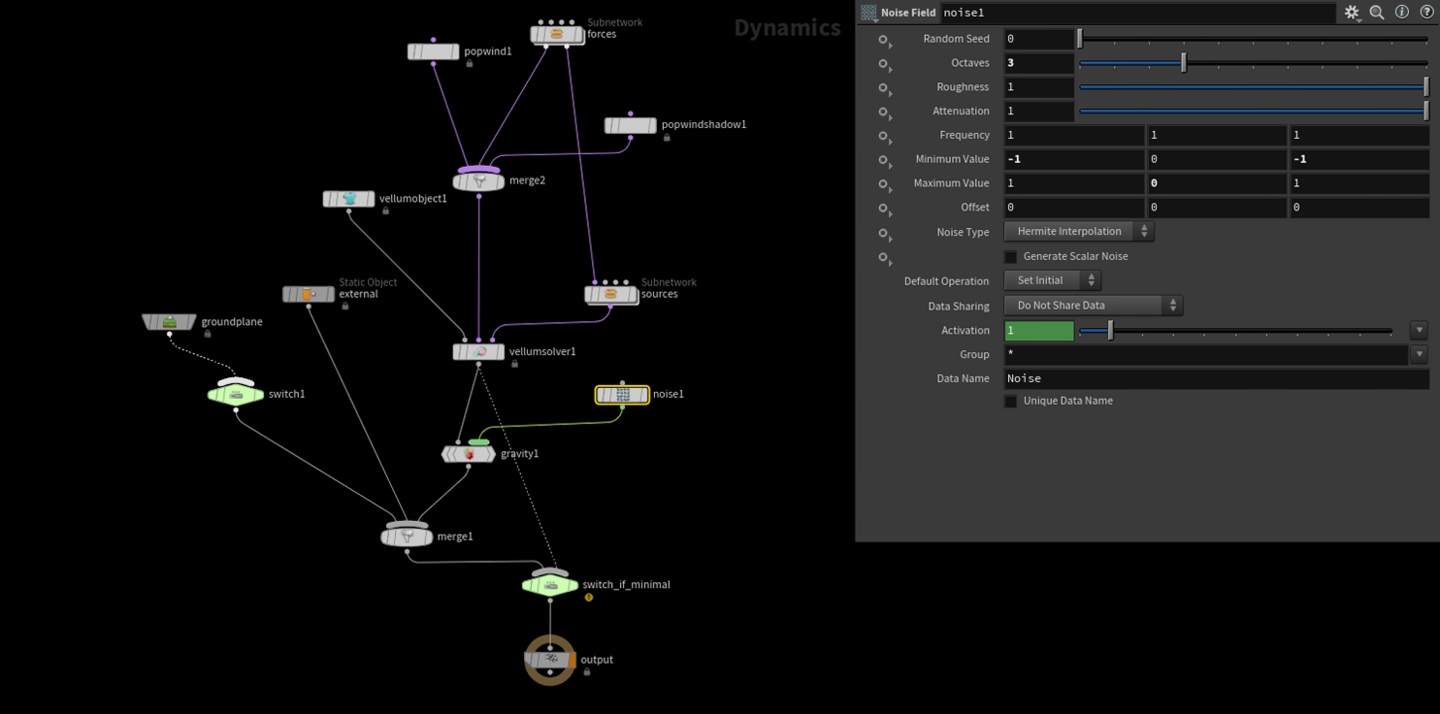 — NOISE добавляет хаотичность влияния гравитации на каждый волосок (можно регулировать амплитуду движения).