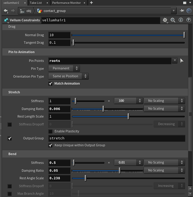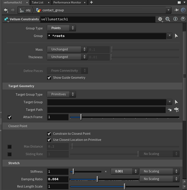настройки Vellum Constraints (hair) | настройки Vellum Constraints (attach)