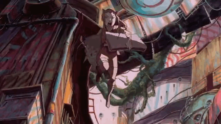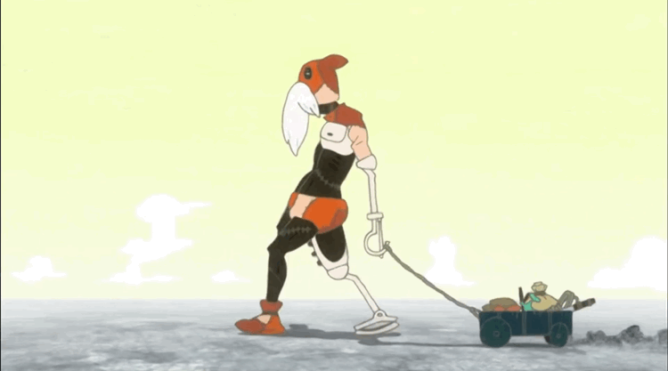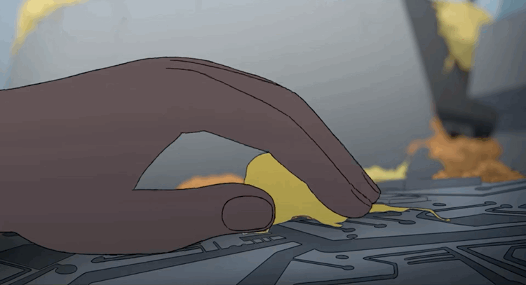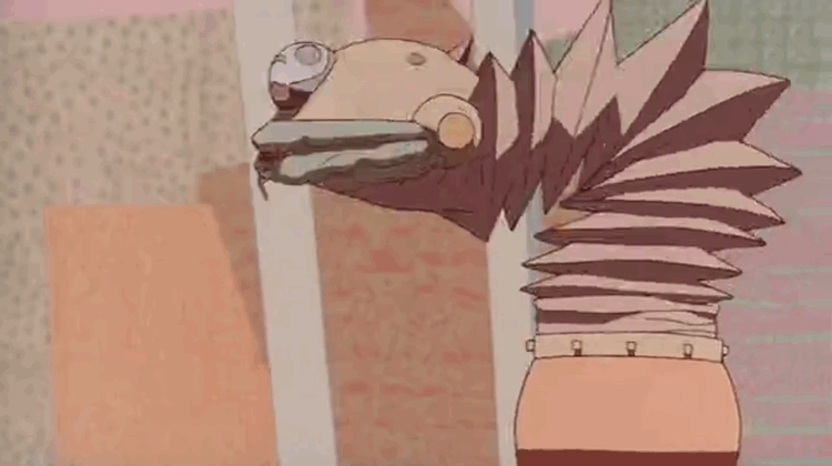 В мультсериале «Царство Падальщиков» инопланетная слизь постепенно «превращает» робота в человека, заставляя его чувствовать физически и эмоционально. Делать свойственные людям вещи.