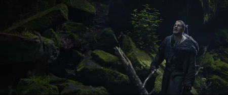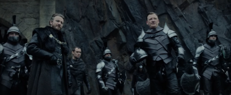 Интересно что в образе антагониста — Вортигерна — точно так же применены атрибуты рыцаря. Он носит кольчугу, охватывающую голову, вычурный доспех с острыми плечами, а также кожаные металлические перчатки.