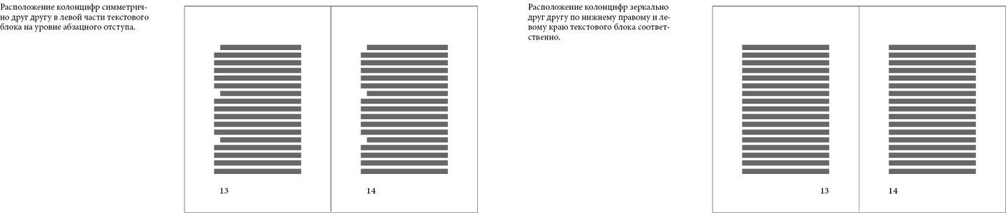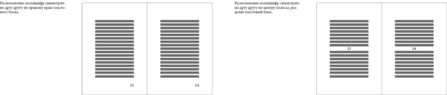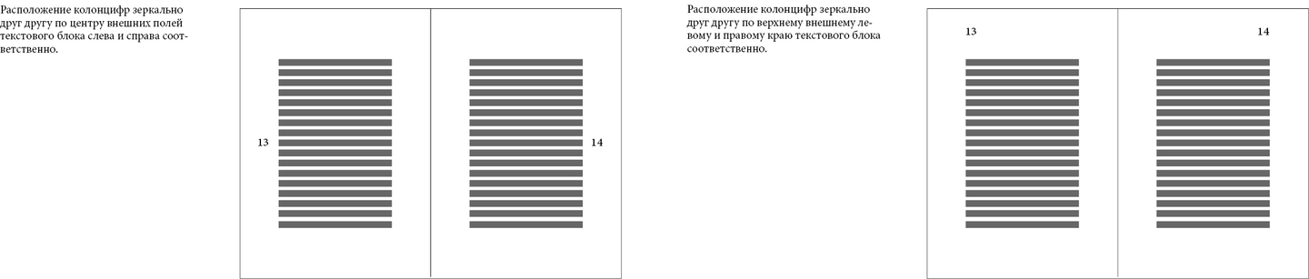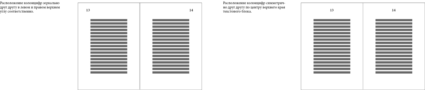 Примеры расположения колонцифр, фрагмент из печатного издания визуального исследования. Примеры набраны самостоятельно.