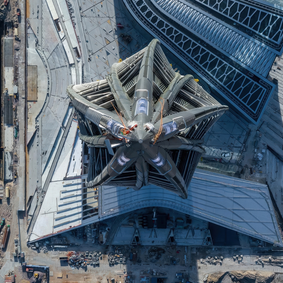 Вид на Лахта Центр сверху — пятиконечная звезда {4} схема // фото