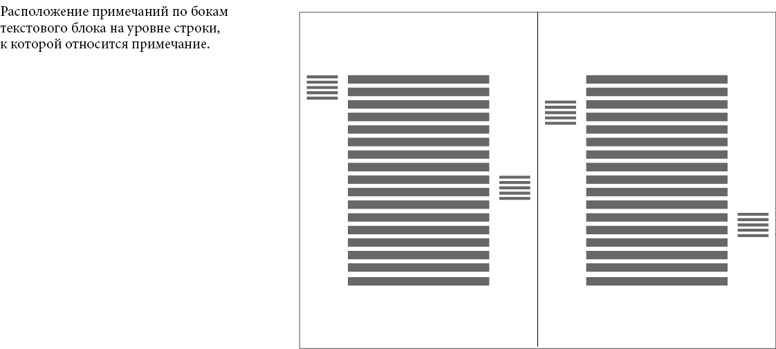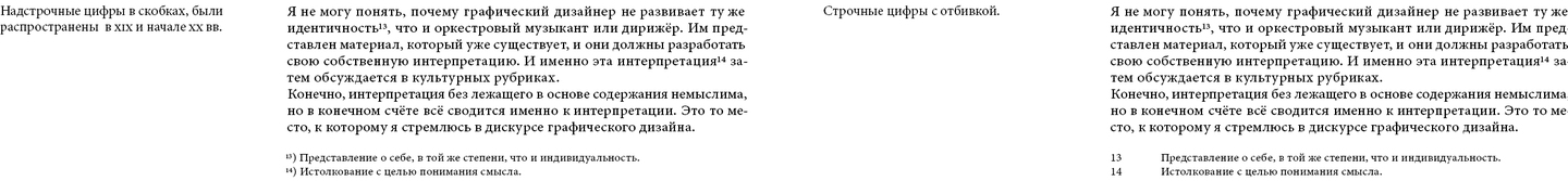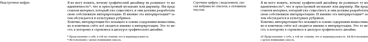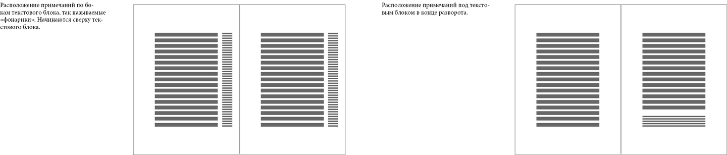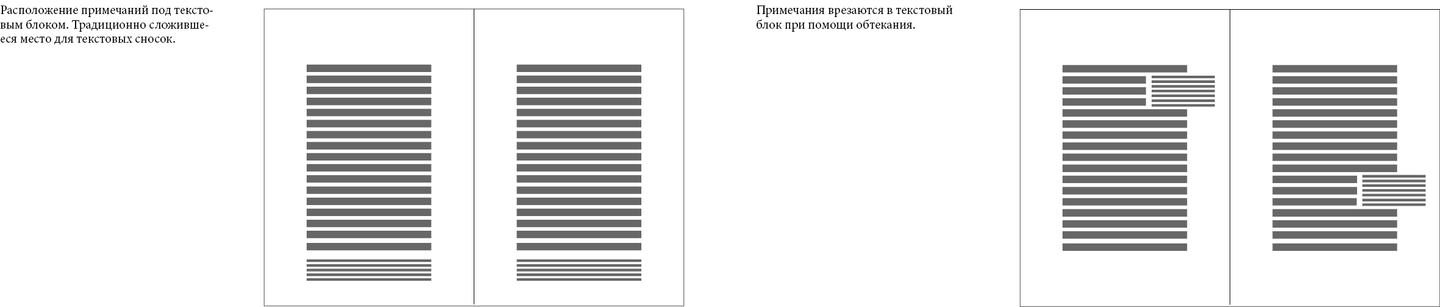 Примеры расположения примечаний, фрагмент из печатного издания визуального исследования. Примеры набраны самостоятельно.