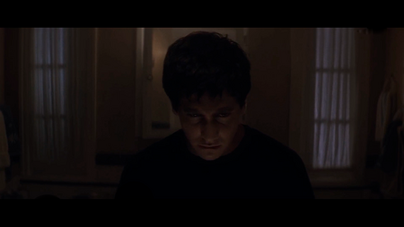 Визуальные маркеры удвоения усиливают метафору: маска Фрэнка создаёт границу между сознанием и тенью, глаза Фрэнка выступают зеркалом Донни, появление в зеркалах и шёпот создают эффект внутреннего голоса, а сцены с Фрэнком в кинотеатре показывают проекцию будущего и страх за Гретхен. Через эти визуальные элементы фильм делает внутренние переживания героя ощутимыми для зрителя, превращая психологический конфликт в материальное и пространственное переживание.