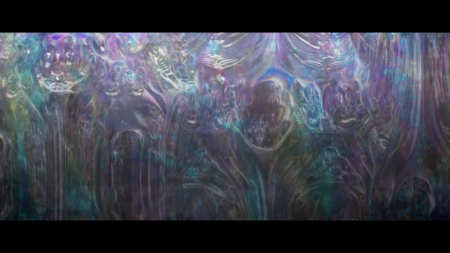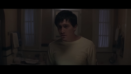 Зеркальная поверхность, обычно выступающая символом идентичности и стабильности, утрачивает структурную целостность, превращаясь в податливую мембрану, реагирующую на эмоциональное напряжение Донни. Тем самым пространство начинает функционировать не как фиксированная среда, а как динамическая, психологически окрашенная субстанция, отражающая столкновение героя с альтернативными временными линиями и вторжением потустороннего. Деформация отражения становится визуальным маркером нарушения причинно-следственных связей и сообщает зрителю о предстоящем смещении границ между объективным миром и метафизическим уровнем повествования.