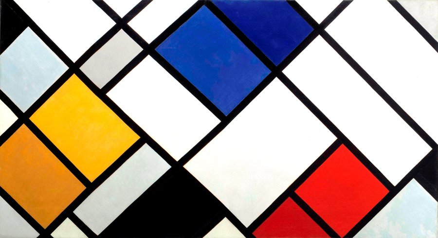 Неопластицизм и De Stijl продвинули понятие модуля к идее универсального порядка. Модуль стал выражением философии гармонии, основанной на соразмерности вертикалей и горизонталей. Сетка превращалась в абстрактный закон, определяющий неизменность местоположения каждого прямоугольника. Ограниченная палитра: три основных цвета и ахроматические тона, подчеркивала принцип раздельности и чистоты элементов. Такие композиции легко масштабировались, поскольку модульные соотношения воспринимались не как декоративные решения, а как метод установления объективного порядка[11].