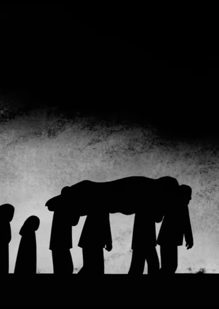 Особое внимание в сценах прощания уделяется перформативности ритуала — звуку, темпу и повторению. Персонажи двигаются медленно, выстраивая процессии, кадры часто застывают, что придаёт сцене обряда ритмичность. Таким образом обозначается священное пространство прощания: длительная тишина, однообразное повторение действий, молчаливая боль утраты подчёркивает обрядовое значение момента.
