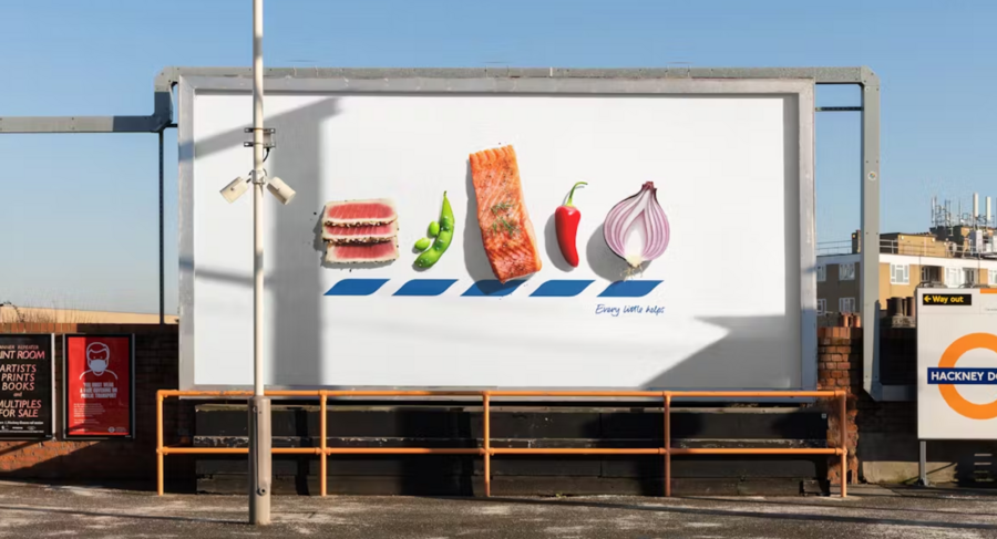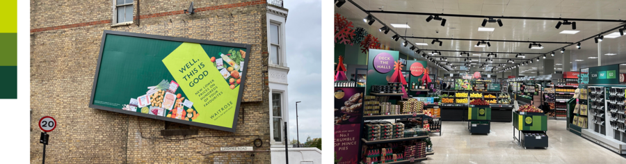 Рекламная кампания Waitrose «Food to Feel Good About», Saatchi & Saatchi, 2023, Лондон / Реклама Waitrose на штендере, Лондон